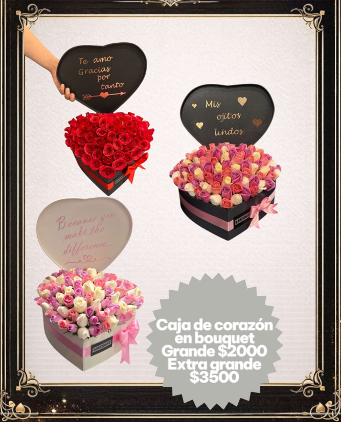 Caja de corazón en bouquet grande y extragrande.
