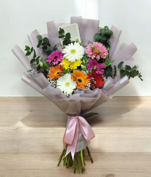 Arreglo de 10 gerberas con follaje