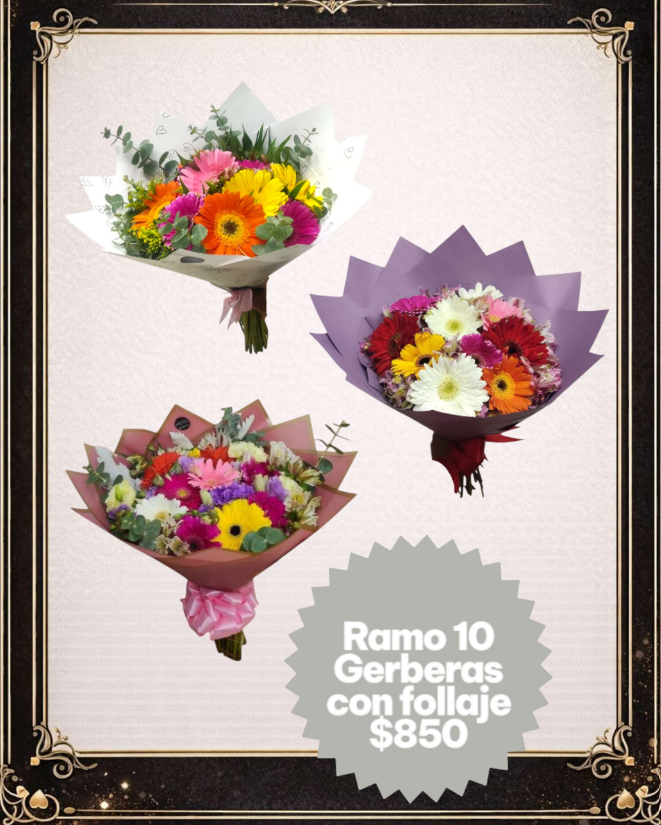Sé el primero en valorar “Ramo de 10 Gerberas con follaje”